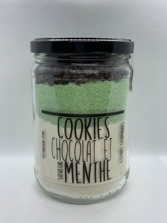 Ingrédients: Farine de blé, sucre, chocolat noir >10% (sucre, pâte de cacao 49%, beurre de cacao 18%, émulsifiant : lécithine de tournesol, arôme vanille), arôme menthe <1%, colorants : E102-E131, extrait d'orge de malt. Le colorant E102 peut avoir des effets indésirables sur l'activité et l'attention chez les enfants.