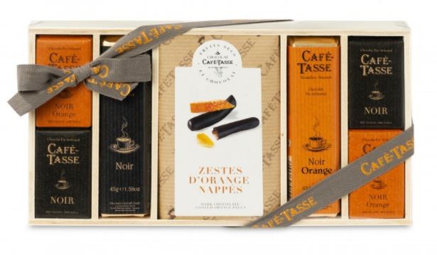Assortiment 8 mini tablettes noir & noir orange , 2 bâtons noir & noir orange , 1 sachet d'orangettes  - 334 gr