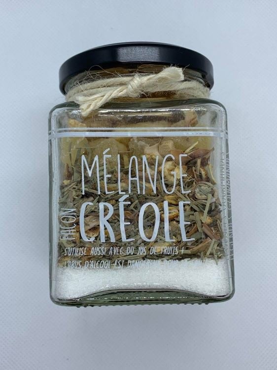 Ingrédients: Sucre, ananas déshydraté 20% (ananas, sucre de canne, acidifiant : E330, conservateur : E223 (sulfites)), chips de banane (bananes, huile de noix de coco, sucre, miel, arôme), copeaux de citronnelle, citronnelle odorante, noix de coco râpée >5% (noix de coco, conservateur : E220 (anhydride sulfureux)), arôme noix de coco.