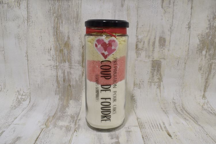 Farine de blé, sucre, poudre d'amandes, chocolat blanc 9% (sucre, sucre du lait beurre de cacao, matière grasse laitière, émulsifiant : lécithine de soja, amidon modifié, arôme), poudre à lever (pyrophosphate acide de sodium : E450i, bicarbonate de soude : E500ii, amidon de blé. Peut contenir des traces de soja, lait, sésame), décoration en sucre (sucre, épaississant : E414, albumine de lait solubilisé, acidifiant : E330, concentré de carthame, colorants : E120, E132, E160a), arôme pomme d'amour <1%, colorants : E129, E110, E124 . Les colorants E129, E110, E124, peuvent avoir des effets indésirables sur l'activité et l'attention des enfants.Traces possibles d'oeuf.