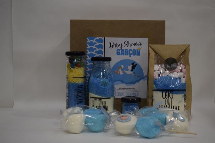 Guimauves >95% (sirop de glucose et de fructose, sucre, eau, gélifiant : gélatine, humectant : E420, arômes, colorant : E133), décoration en sucre (sucre, épaississant : E414, albumine de lait solubilisé, acidifiant : E330, concentré de carthame, colorants : E120, E132, E150d, E160a, E172).
