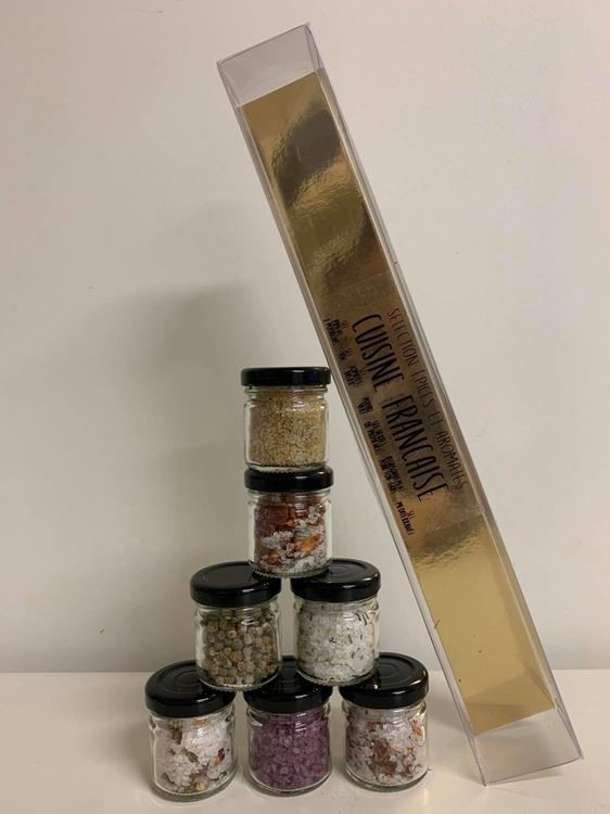 Ingrédients sel à foie gras: Gros sel alimentaire >50% (sel, acidifiant : E500, anti-agglomérant : E535), cassonade >50%, poivre noir, mélange d'épices >1% (coriandre, muscade, poivre, cannelle, clous de girofle).