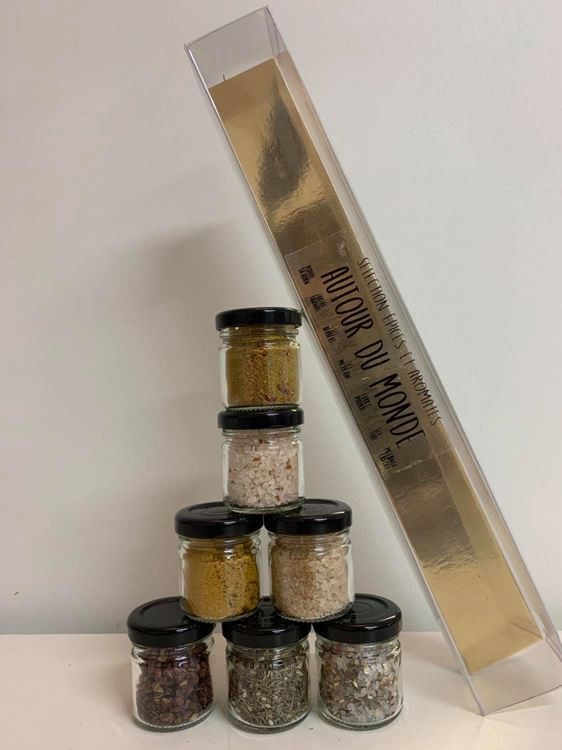 Ingrédients sel berbère: Gros sel alimentaire >90% (sel, acidifiant : E500, anti agglomérant : E535), mélange d'épices et d'herbes aromatiques <5% (niora (capsicum annum L), sésame blanc, thym.