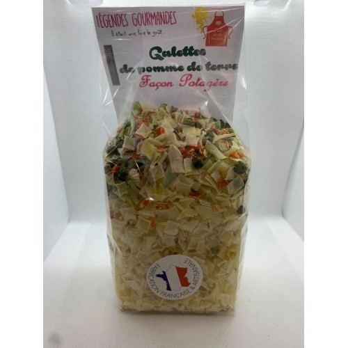 Réhydrater la préparation dans 1L d'eau bouillante pendant au moins 15 minutes. Egouter les légumes et ajouter 2 oeufs. Mélanger. Faire chauffer une poêle avec 2 càs d'huile. Former des galettes avec la préparation directement dans la poêle. Laisser cuire 2 min puis retourner la galette pour cuire l'autre face. Les 2 faces doivent être dorées. Servir en accompagnement ou avec une salade.